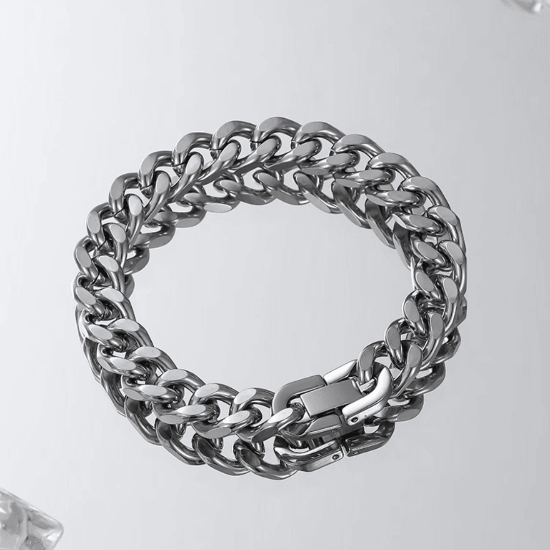 The Dravik Bracelet is a bold study in structure, precision, and weight. Handcrafted from premium 316L stainless steel, its tightly woven Cuban-style links are designed to sit confidently on the wrist, combining a clean silhouette with commanding presence.