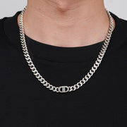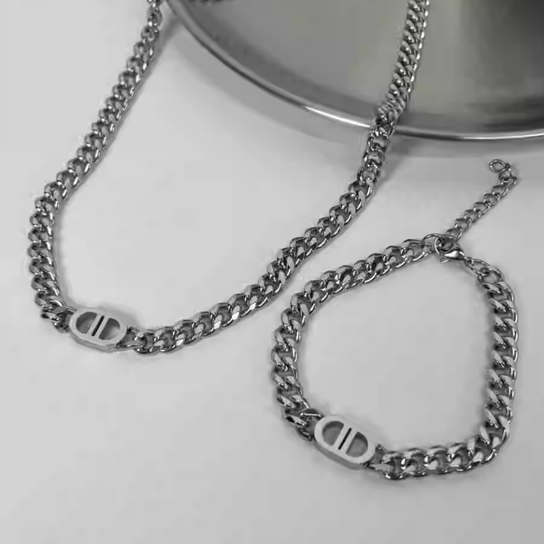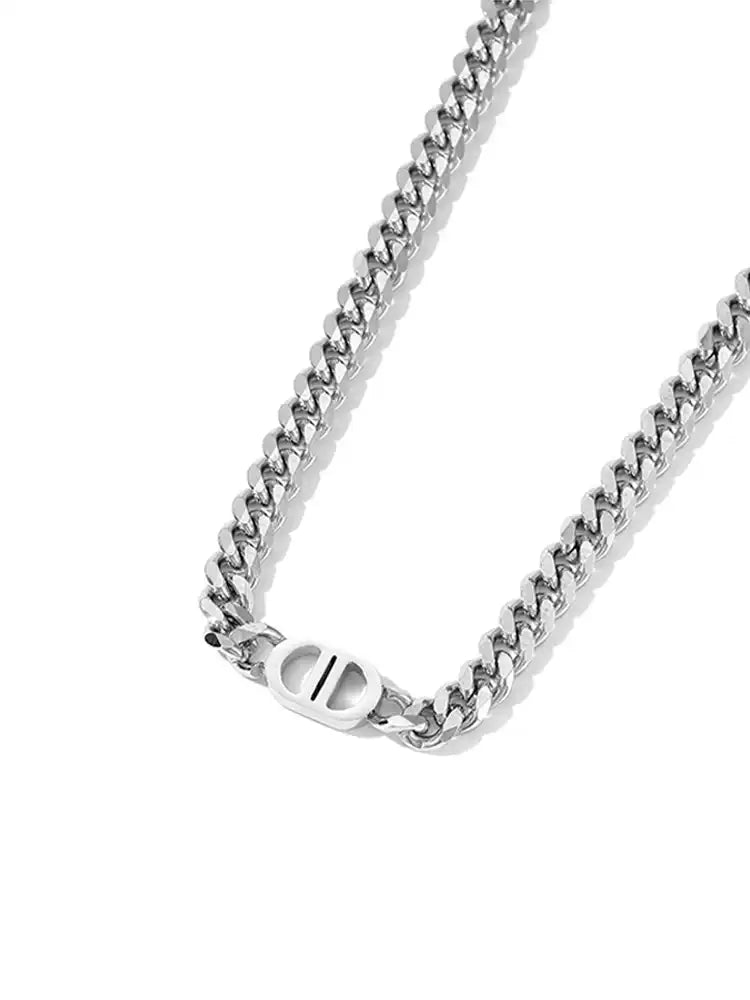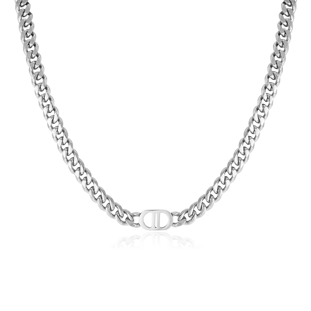 Senn distils the essence of minimalism into its purest form — clean lines, balanced proportions, and a sculptural centrepiece that feels both intentional and abstract. The flat Cuban chain offers an industrial rhythm, while the geometric charm at its centre serves as a quiet nod to modern architecture and structural clarity.